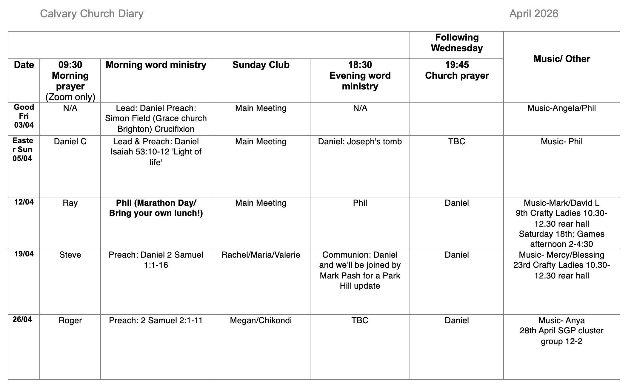 Please contact us if you’d like to join our Wednesday prayer meeting on Zoom, and we’ll be happy to share the Zoom details with you.